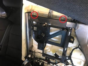 - Lift the leather seat back cushion away from the seat to access the top fasteners of the ECU mount bracket.