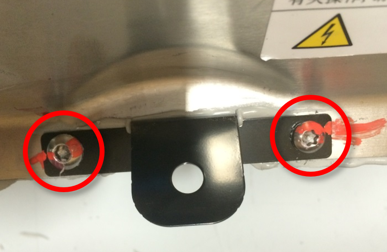 - Remove and discard the screws (x2) that attach the broken aero shield support tab to the HV battery, and then remove and discard the broken aero shield tab.