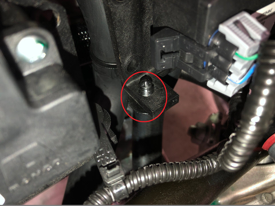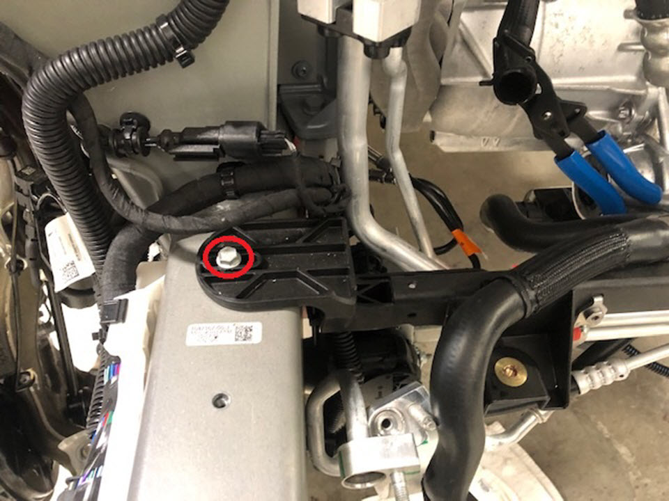 - Remove the fir tree clip that attaches the cooling fan electrical harness to the support beam using a clip pry tool.