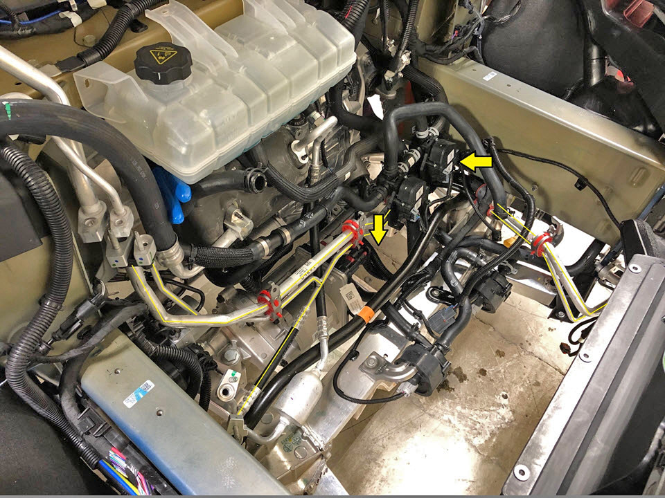 - Remove the line from the vehicle by feeding it around the rear of the 3-way valve and 4-way valve, and then pulling the line from the RH side of the vehicle.