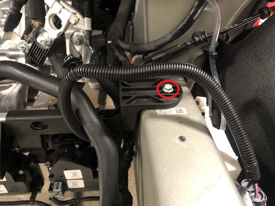 - Remove the 12V auxiliary battery cage. See Cage - Battery - Auxiliary - 12V (Remove and Replace) .