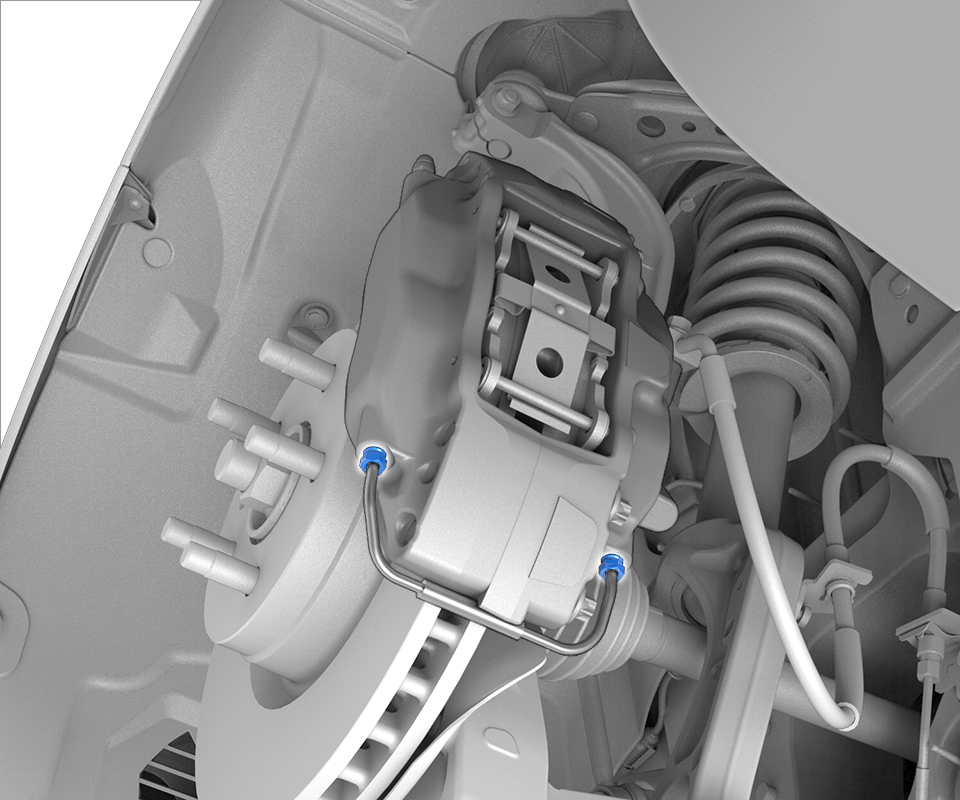 - Bleed the LH front brake caliper. See Bleed Procedure - One Caliper (Remove and Replace) .