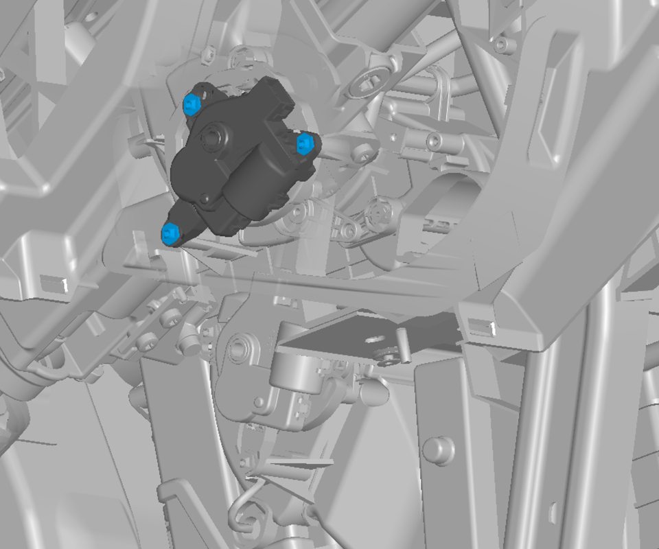 - Remove the screws (x3) that attach the mode actuator to the front HVAC assembly, and then remove the actuator from the vehicle.