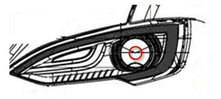 Figure 1. Model S Headlight Figure 2. Model X Headlight - Mark a straight line between each of the center projector lenses and the wall. At the point where each line meets the wall, mark the height that was noted in the previous step.