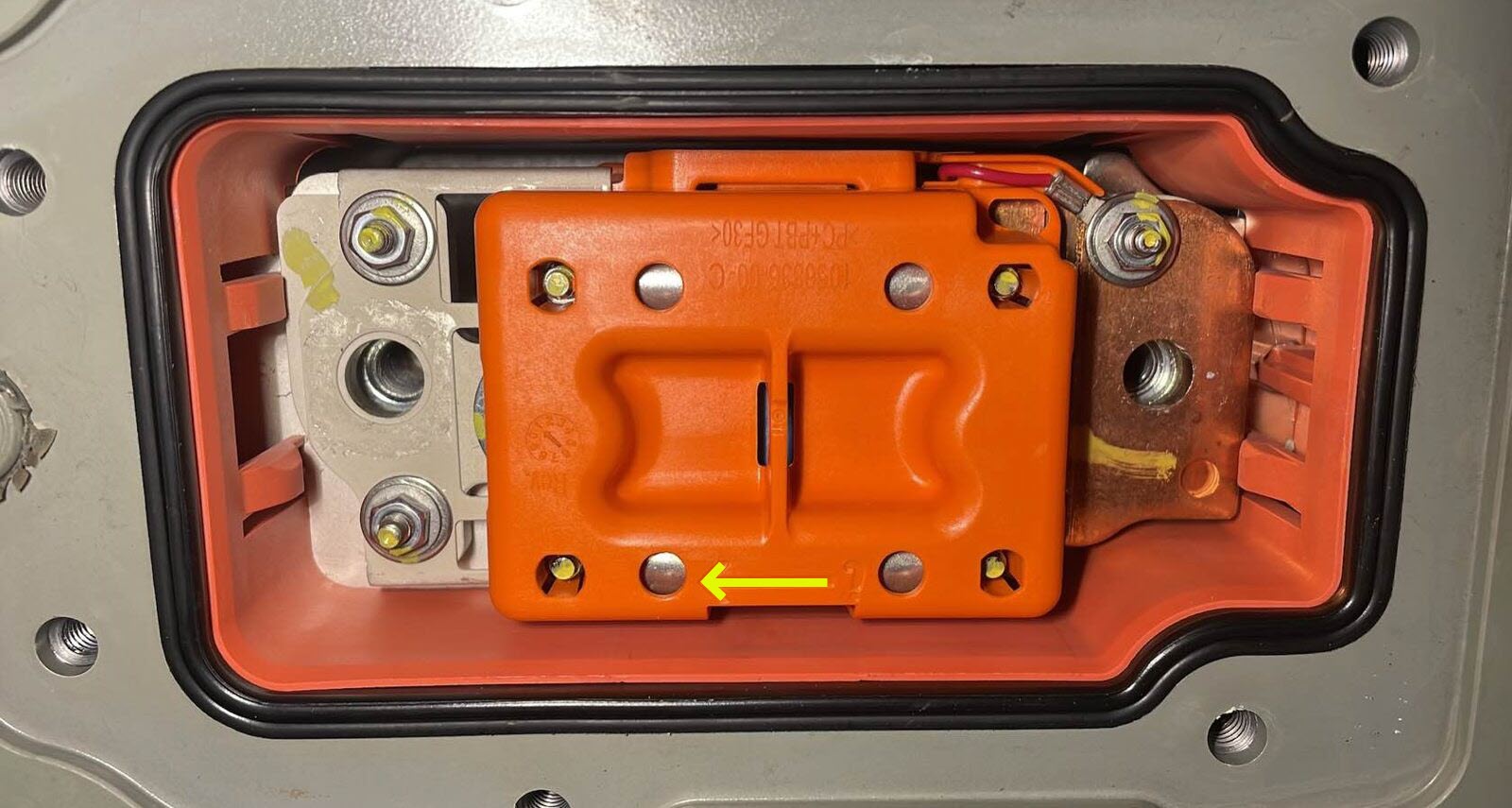 - Remove the bolts (x6) that attach the fuse cover to the HV battery.