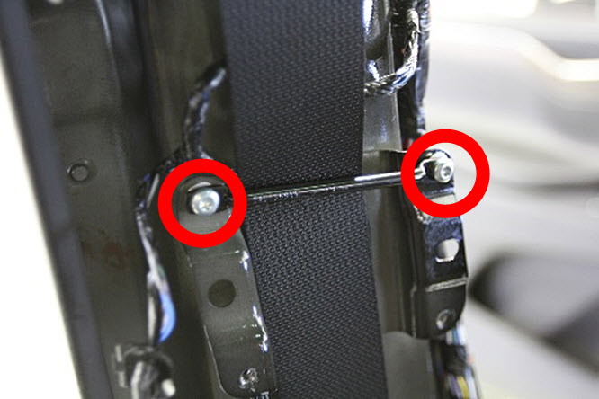 - Remove the screws (x2) that secure the seatbelt webbing guide to the B-pillar (torque 2.4 Nm).