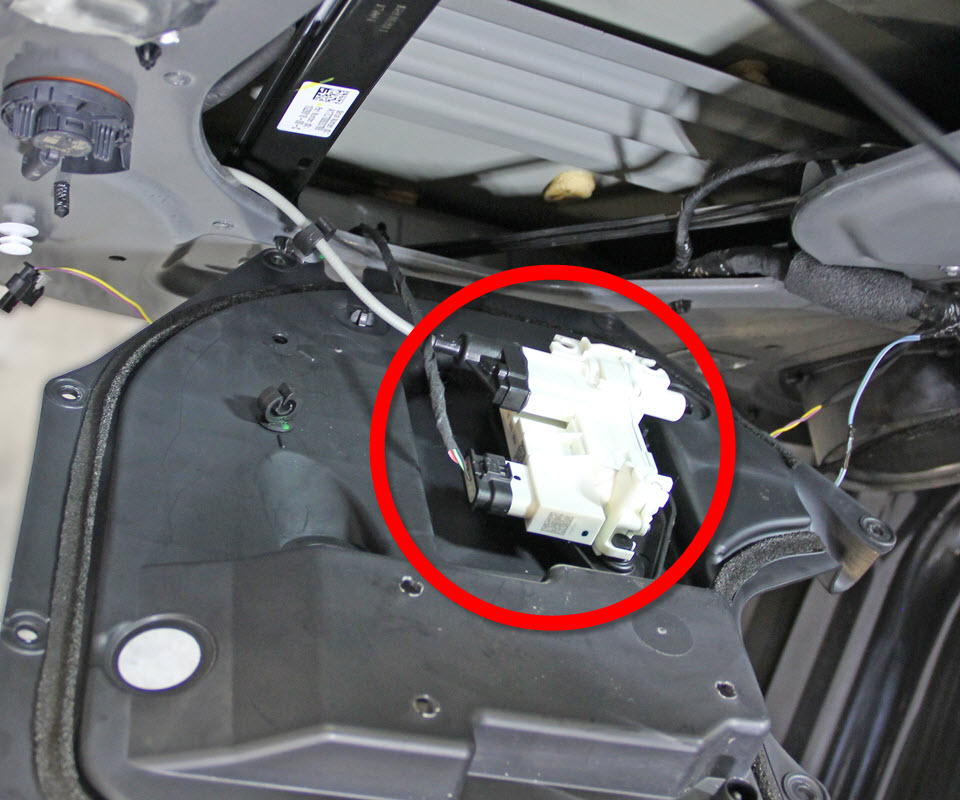 - Remove the latch cinching motor from the closeout panel.