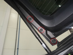 - Remove the pushpin clips (x3) that attach the LH and RH side pinch sensors to the liftgate.