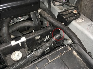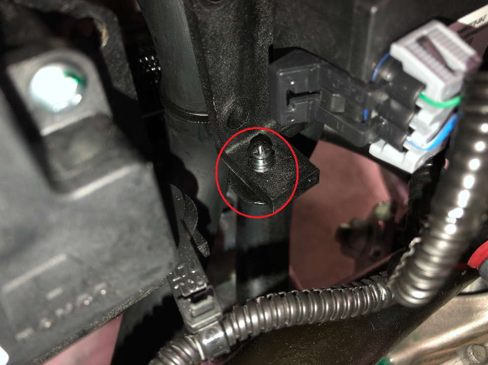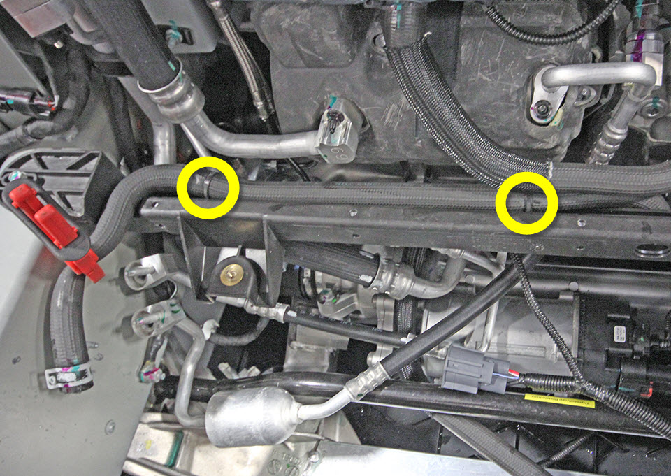 - Remove the clips (x2) that attach the coolant hose to the support beam.