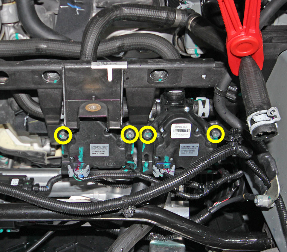 - Remove the bolts (x4) that secure the 3-way and 4-way valves to the plastic support beam (torque 5 Nm).