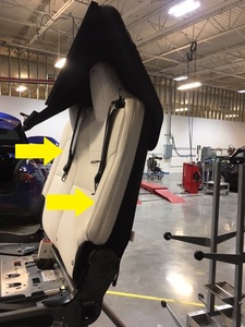 Secure lower portion of 60 seat back upholstery