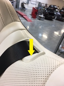 - Remove leather and cushion from seat to gain access to seat belt retractor