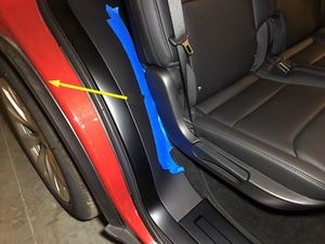 - Tape the RH lower C-pillar area around the 2nd row seat side trim area