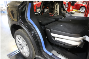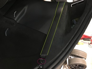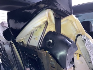 - Tape the RH lower C-pillar area around the 2nd row seat side trim area