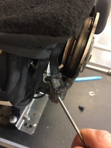 Remove seat belt from seat frame