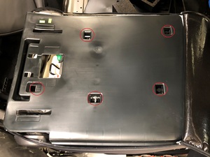 Secure lower portion of 40 seat back upholstery