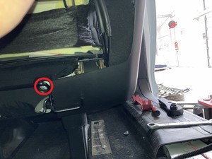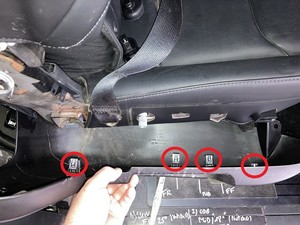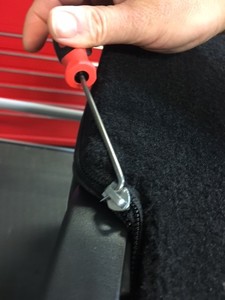- Roll lift gate carpet back out of the way to access 2nd row rear floor panel