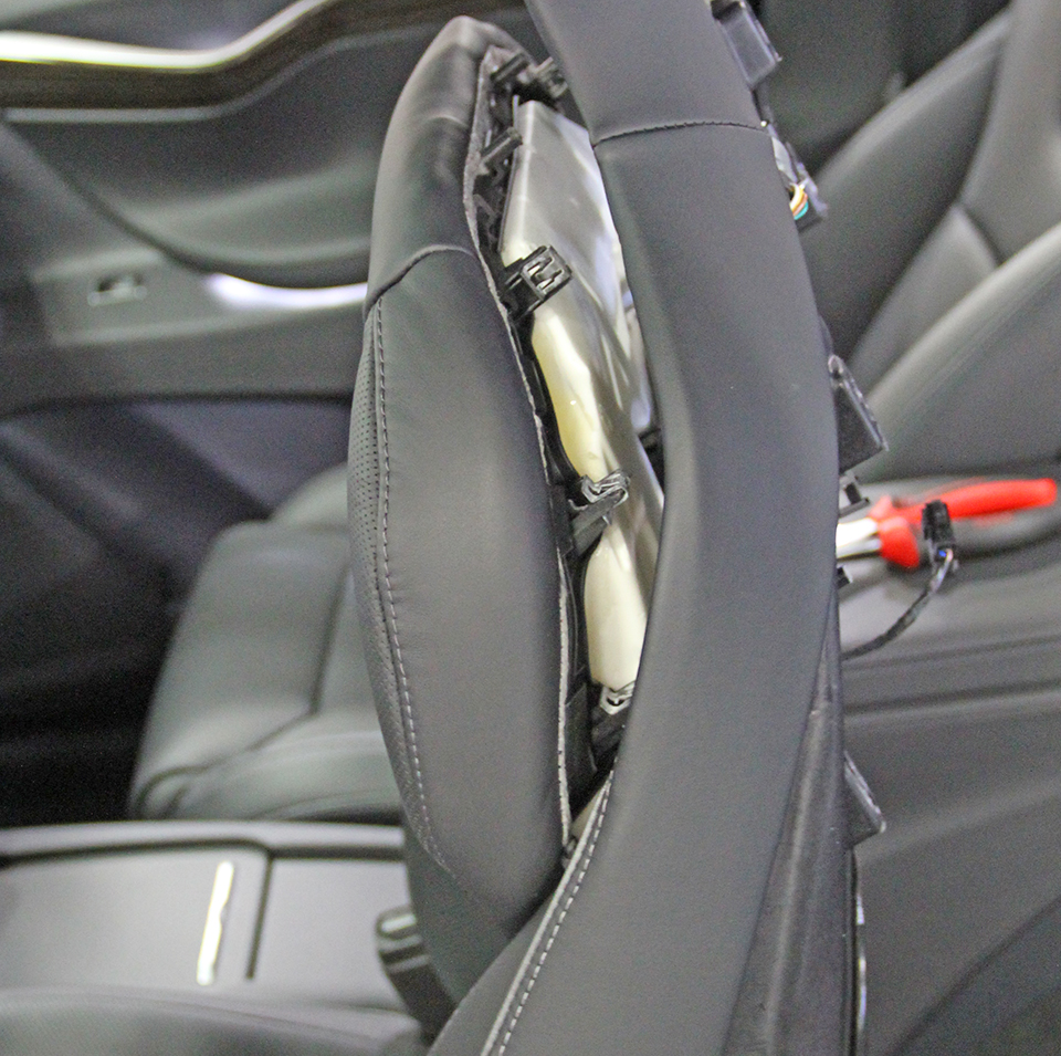 - Remove the side cover from the seat backing.