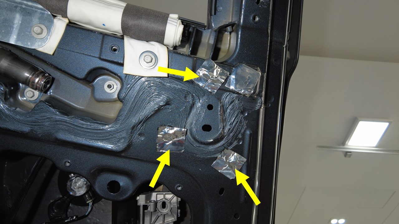 - Peel off the films (x3) that cover the openings of the LH front door.