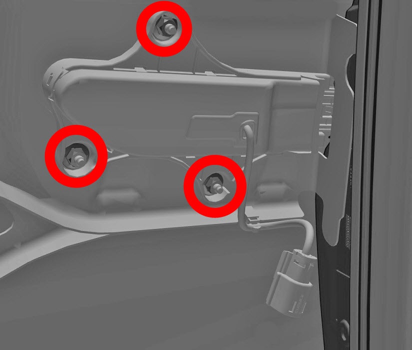 Remove the nuts (x3) that secure the door handle to the door (torque 9 Nm).