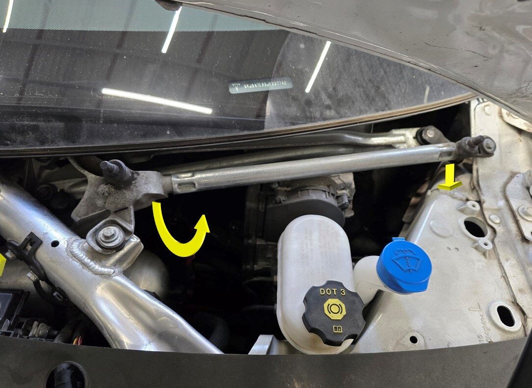 - Remove the bolts (x3) that attach the wiper module to the bulkhead (torque 6 Nm).