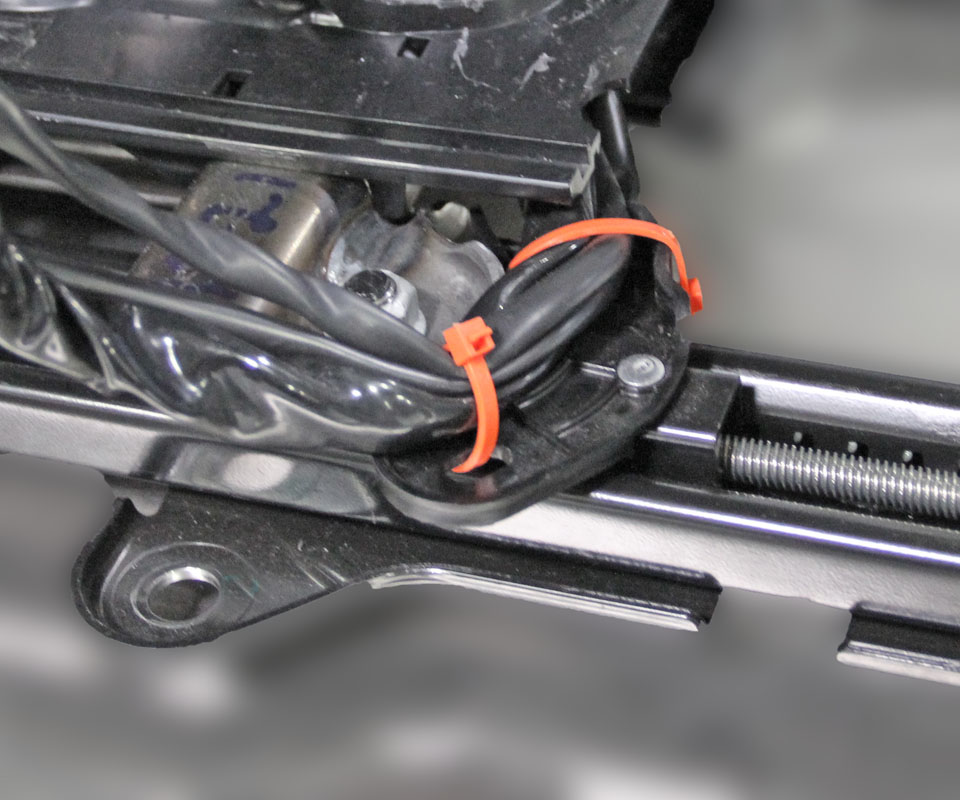 - Use cable ties to secure the harnesses to the plastic bracket on the track.