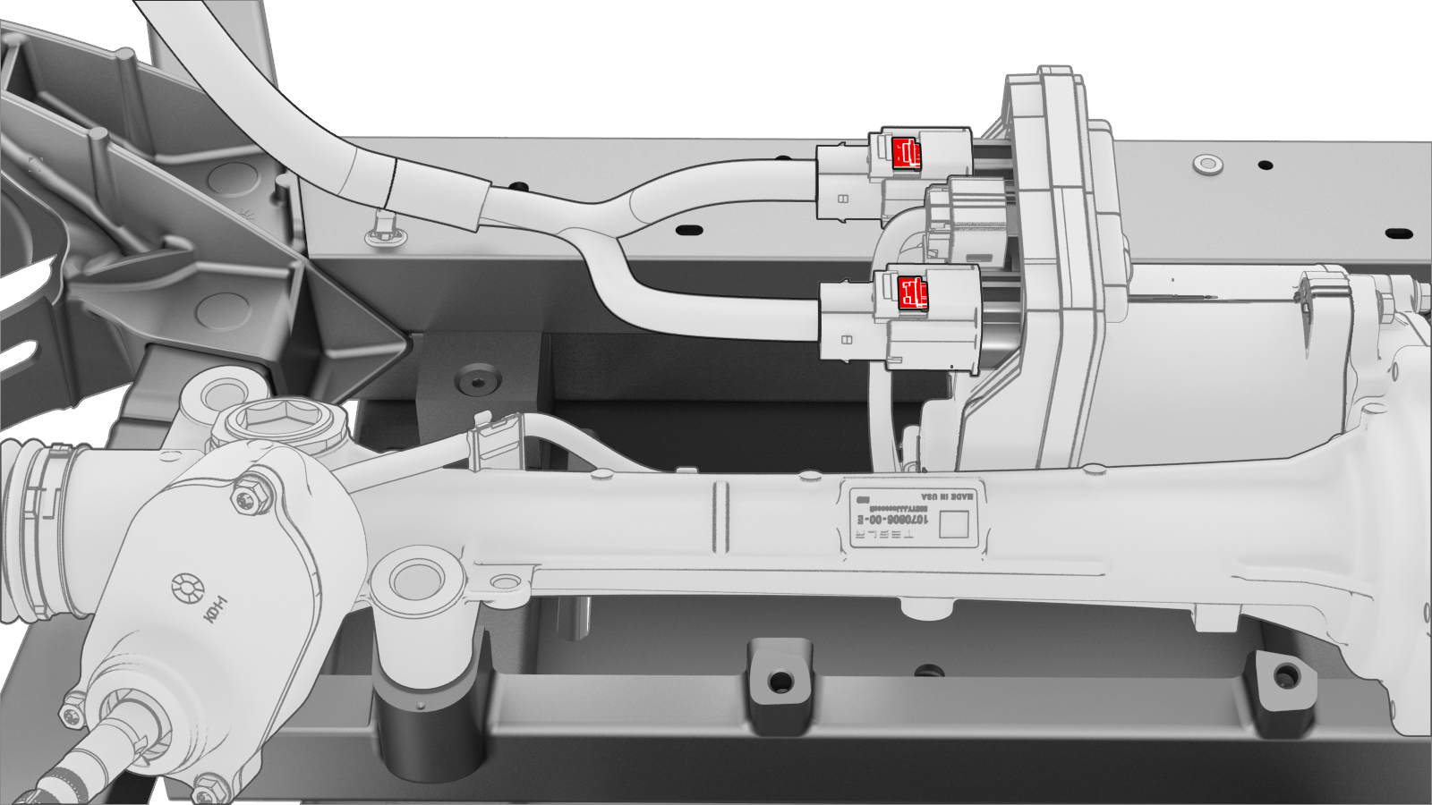 Connect the logic connectors (x2) for the steering rack.