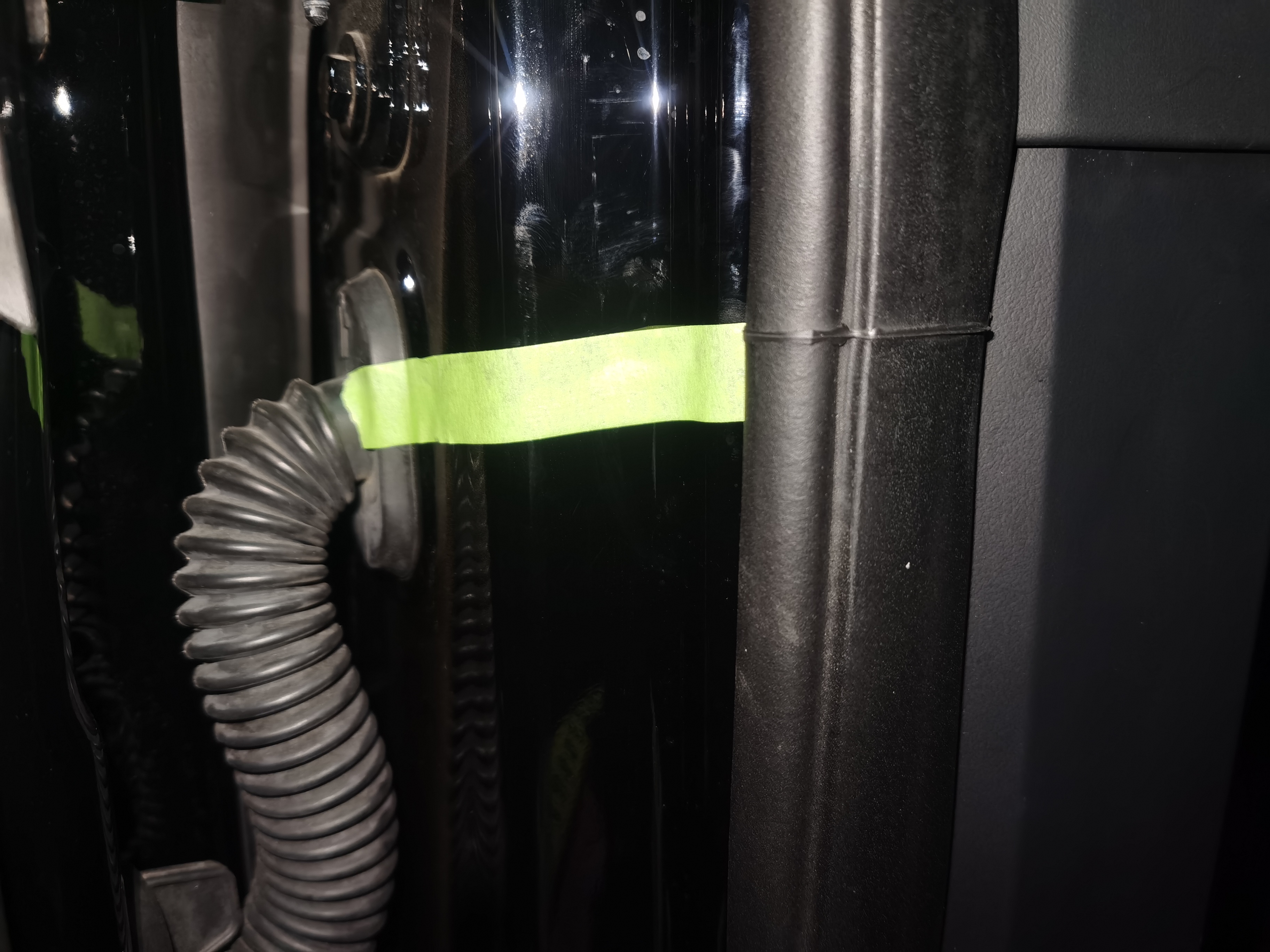 - Apply masking tape on the A-pillar to indicate the location of the junction of the seal near the door quarter glass.