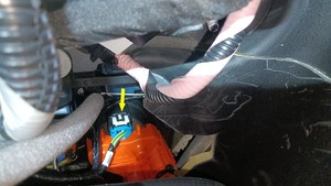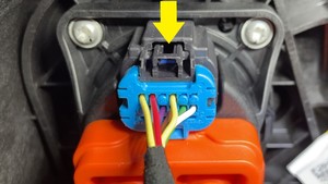 - Carefully remove the white locking tab, press the black tab and then pull off the connector.