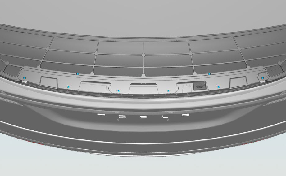 - Remove the bolts (x8) that secure the high mounted brake lamp to the spoiler (torque 1.5 Nm).