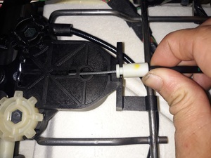 - Position the 2nd row seat 40 track EZ entry actuator on the vehicle, and then install the tabs (x3) that attach the actuator to the bracket.