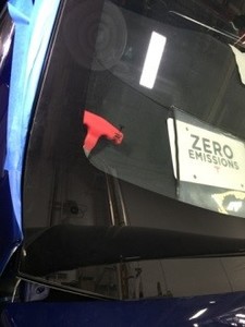 - Apply tape to both A-pillars to prevent damage while cutting the urethane.