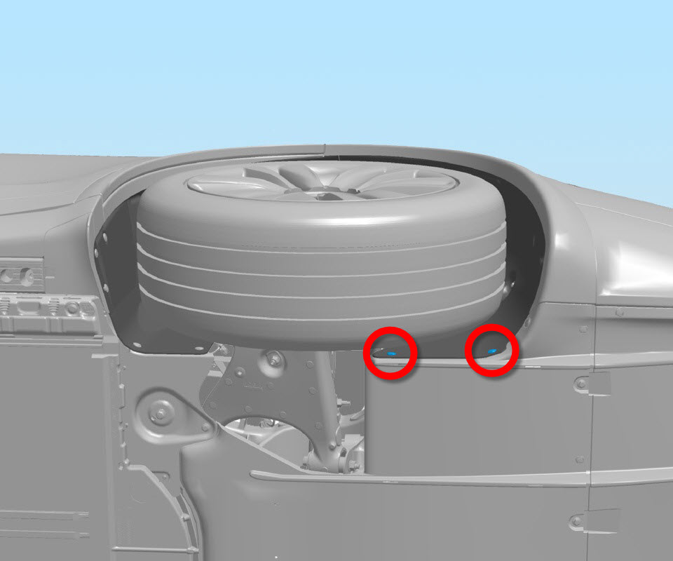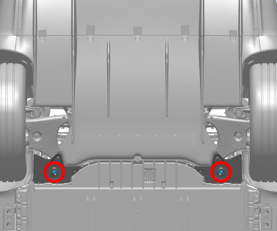 - On both sides of the vehicle, remove the bolts (x2) that secure the wheel arch liner to the mid aero shield (torque 4 Nm).