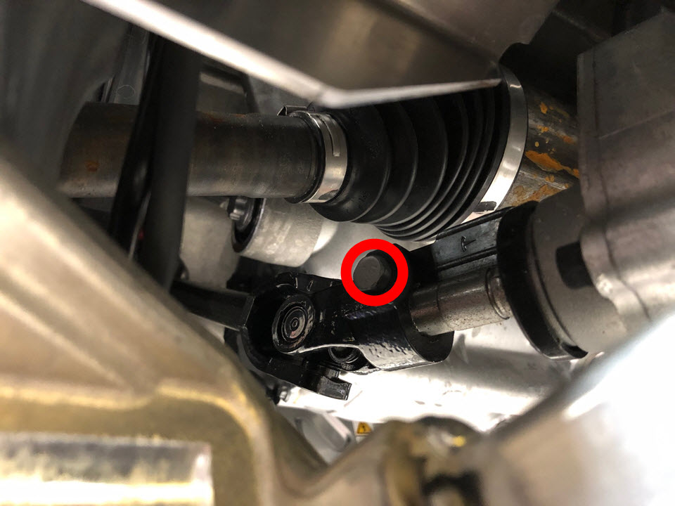 - Slide the lower i-shaft onto the steering gear, and then install the bolt that attaches the lower i-shaft to the steering gear (torque 30 Nm).