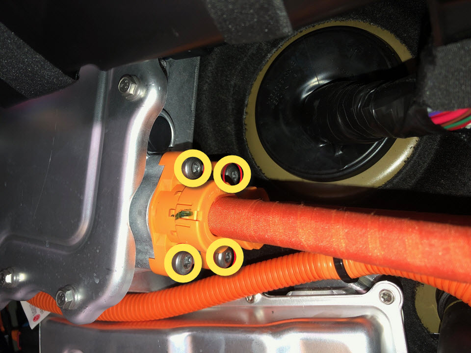 - Remove the bolt that attaches the Front Junction Box (FJB)-to-front drive unit HV harness to the front drive unit.
