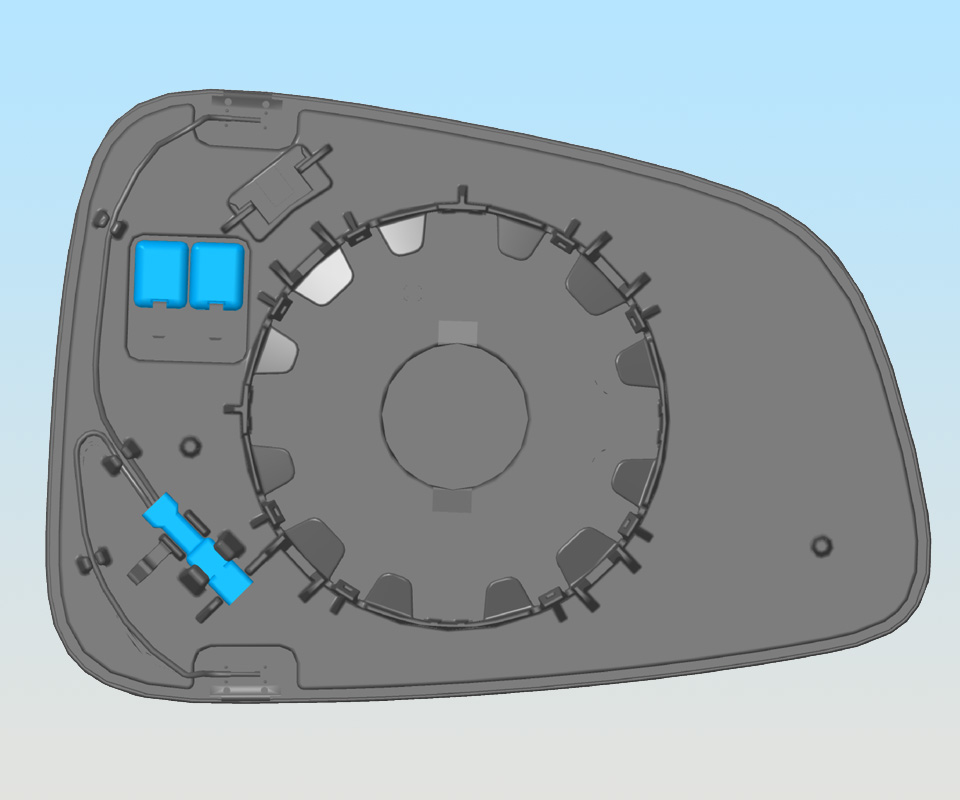 Align the clips on the back of the door mirror glass with the mirror assembly