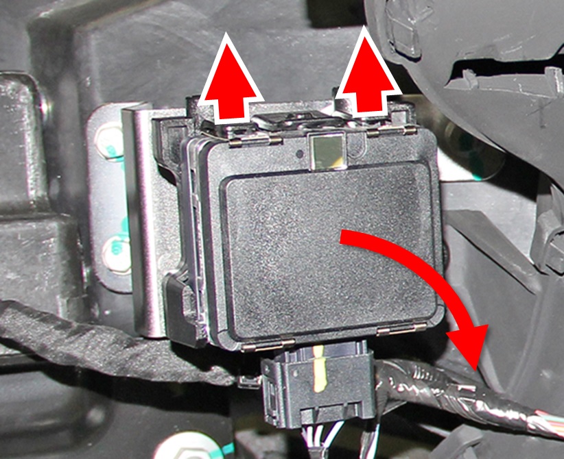 NoteThe following image shows the electrical connector still connected to the bottom of the radar sensor.