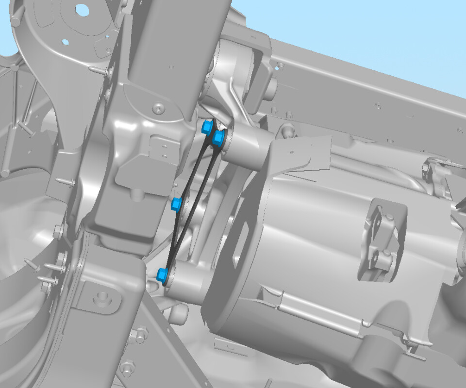 - Install the bolts (x2) that attach the LH front drive unit mount to the side rail (torque 65 Nm).