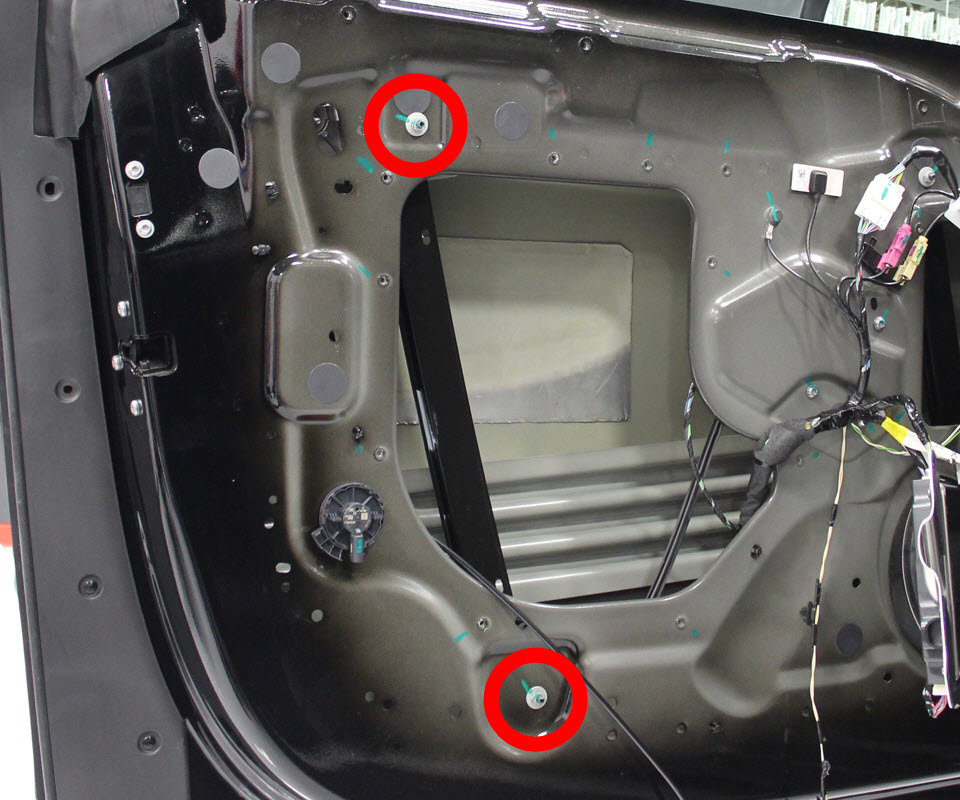 - Remove the front nuts (x2) that secure the regulator to the door (torque 10 Nm).