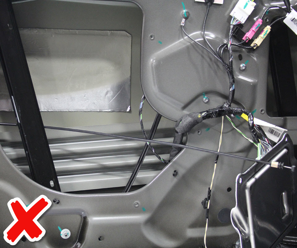 - Push the regulator outboard so that the studs no longer protrude through the door shell.
