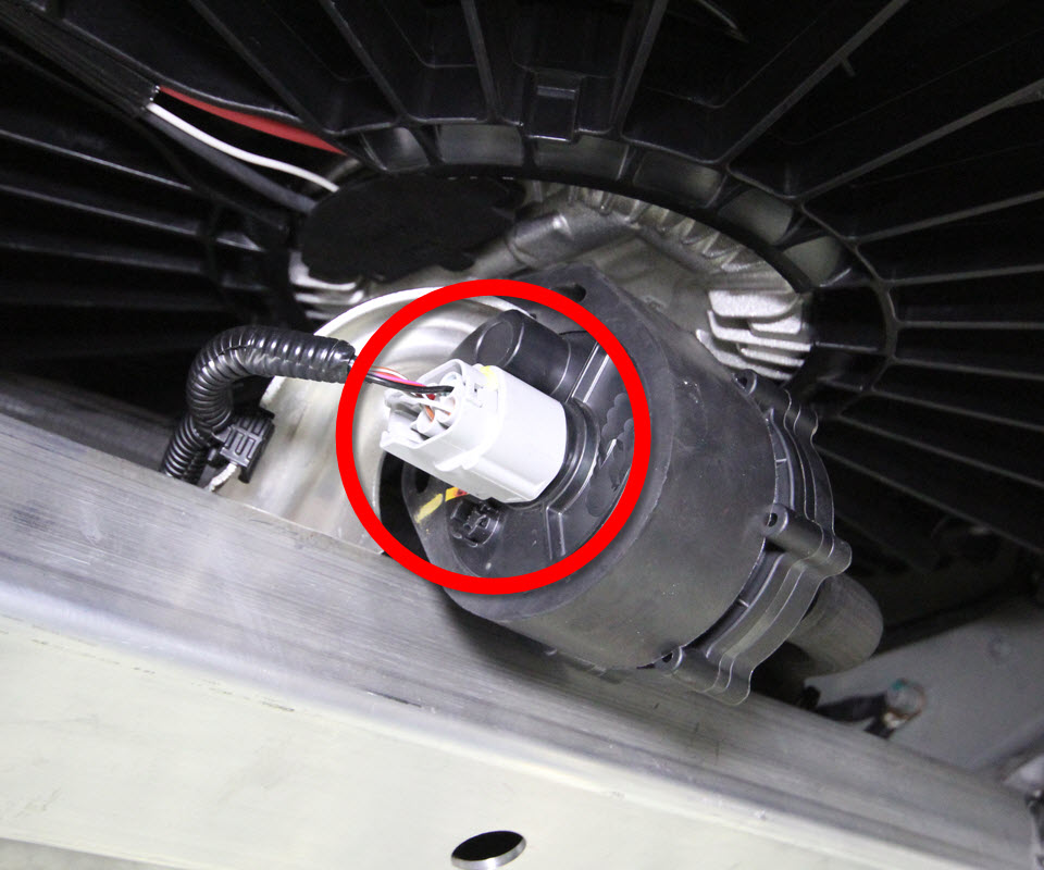 - Disconnect the low voltage electrical connector from the coolant pump.