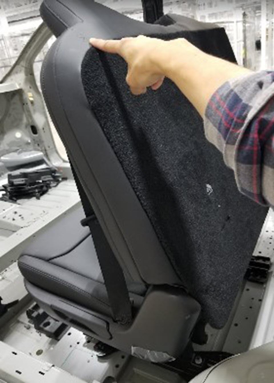 - Slide the tabs at the rear edge of the outside recliner cover down into the seat, fasten the clips (x4), and then secure the cover with the push clips (x2).