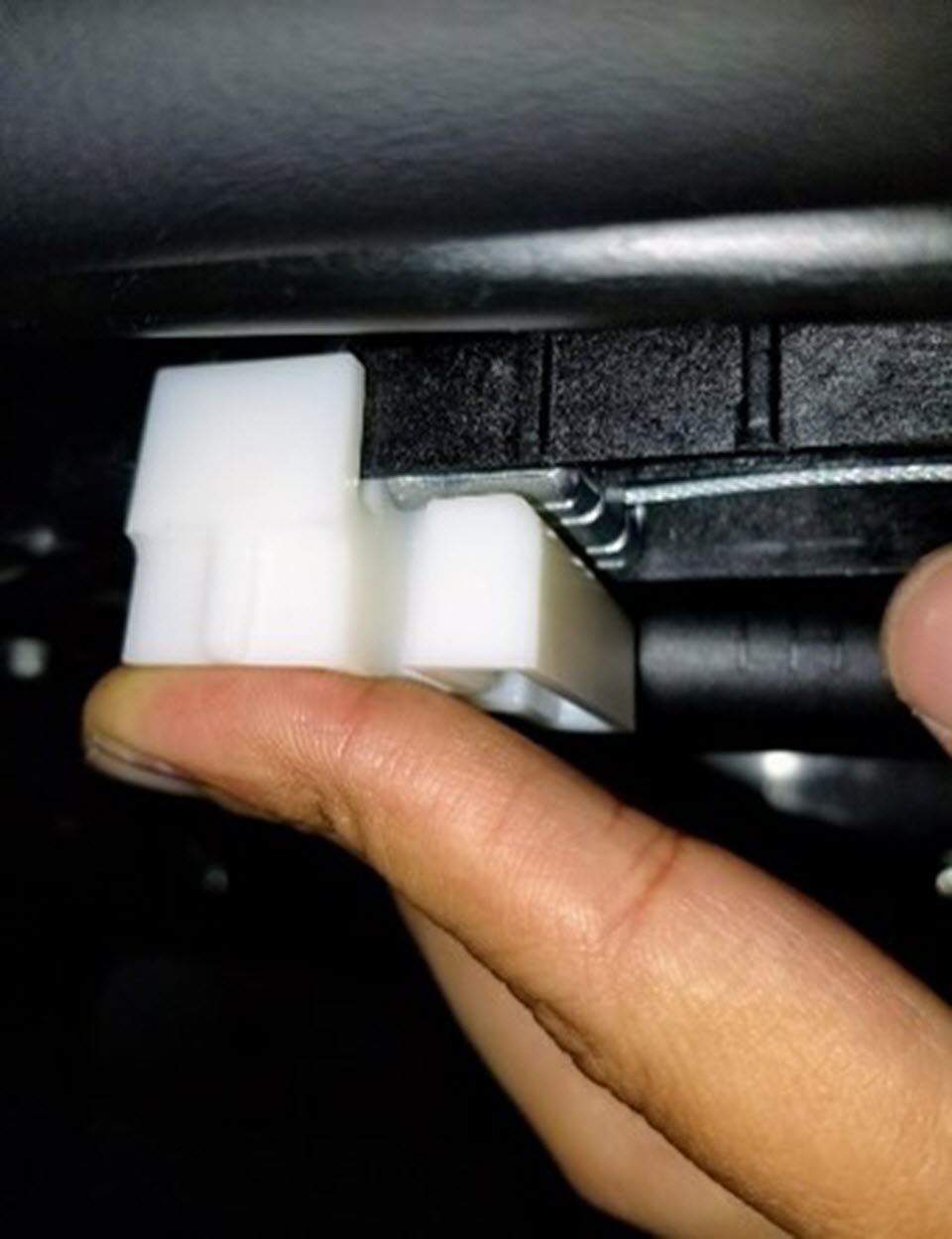 NoteSqueeze the rear edge of the tabs (x2) simultaneously. Once the tabs are released, pull the lock out.