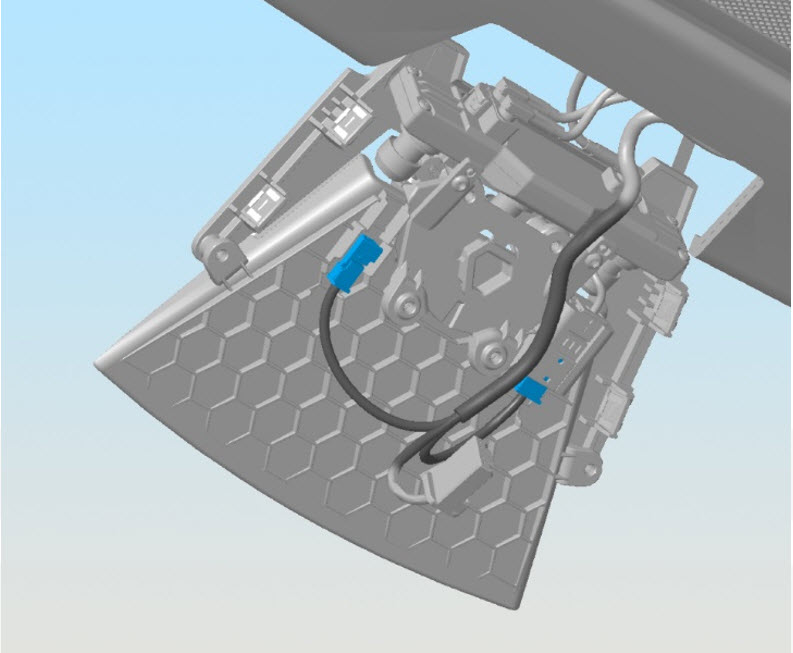 - Connect the harnesses. Affix the connectors to the double-sided foam tape on the underside of the glare shield.
