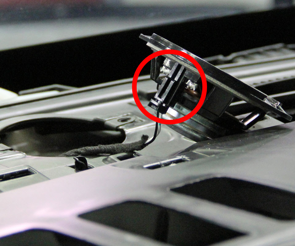 - Release the screws (x2) that secure the center speaker to the IP carrier (torque 2.3 Nm), but do not fully remove the speaker at this time.