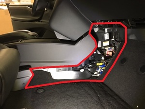 - Release the clips (x6) that attach the RH center console close out panel to the center console, and then remove the panel.
