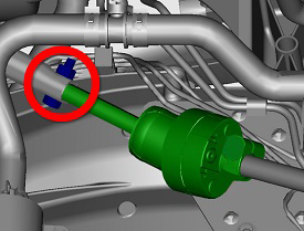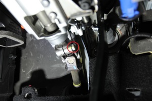 - Remove the bolt (torque 50 Nm) that attaches the upper intermediate shaft to the lower intermediate shaft.