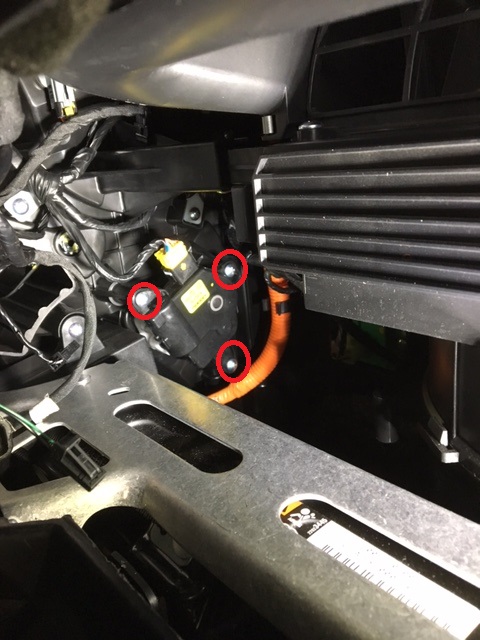 - Remove the screws (x3) that attach the front passenger temperature actuator to the HVAC assembly, and then remove the actuator from the vehicle.