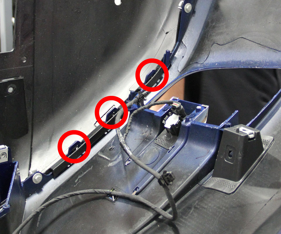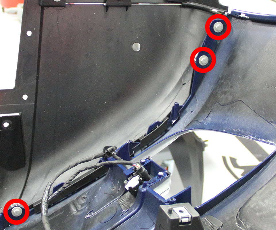 - On each side of the fascia, remove the screws that secure the valance to the fascia (torque 3 Nm).