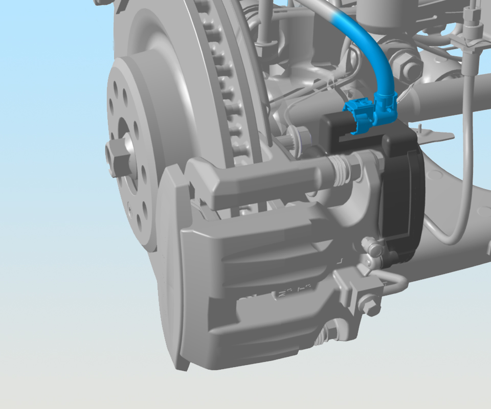 - Disconnect the electrical harness from the LH rear brake caliper motor connector.